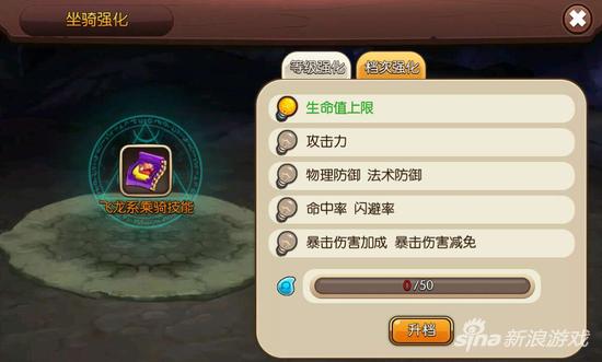 玩家可通过耗损道具立骑技术石提拔乘骑技术品级,从而提高属性转化比例。